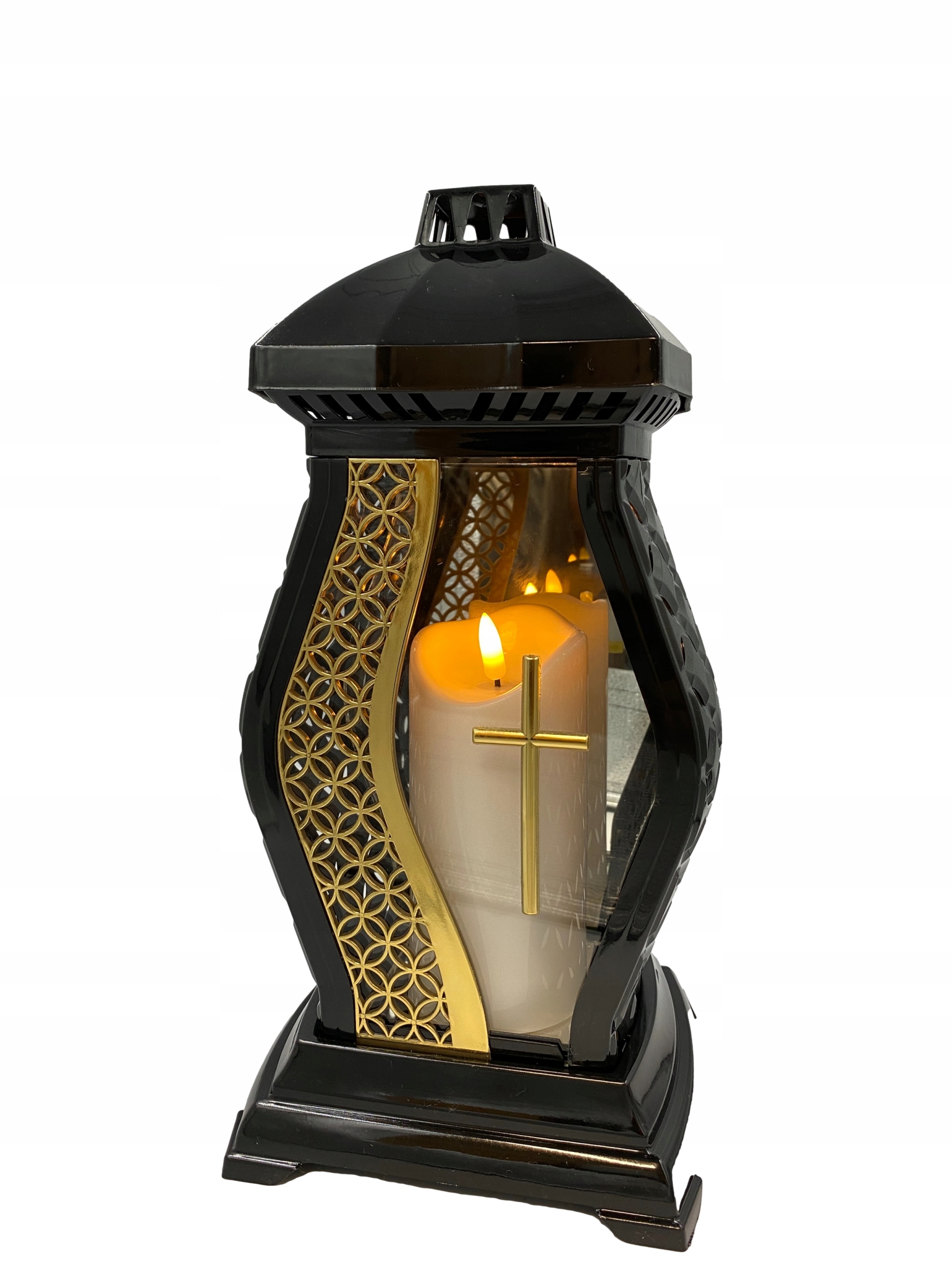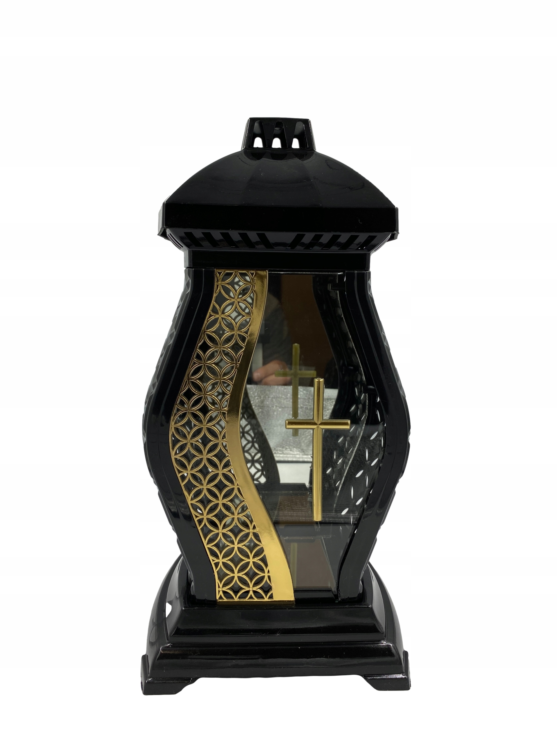 ZNICZ KAPLICZKA GLAMOUR WAZA RATAN SIATKA CZARNO ZŁOTA 37CM NOWOŚĆ