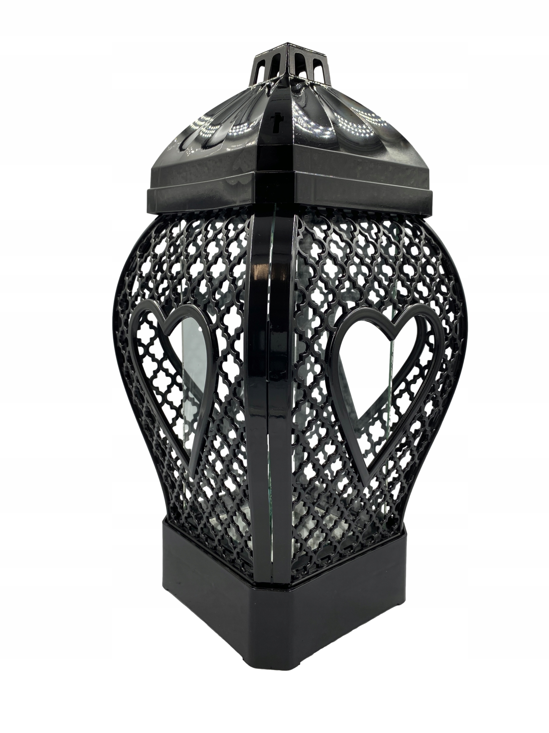 ZNICZ LAMPION KAPLICZKA SERCE RATAN DUŻY CZARNY GLAMOUR 37CM OZODBNY