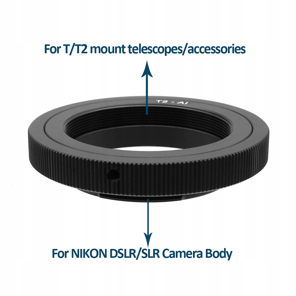 Адаптер используется для прикрепления линз с потоком t2 по-разному t-mount для камер, оснащенных nikon ai. Оцинкованный дуральный, устойчивый к истиранию и истиранию . Не вызывает отражателей и вспышки. Точная производительность гарантирует идеальную посадку. в теле, и имеет защиту от неправильного поворота адаптера