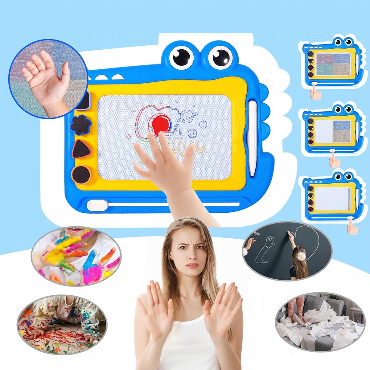 Дети могут легко нарисовать на магнитной доске, и их рисунки останутся видимыми до тех пор, пока не будут стираться. Просто переместите пальцем вперед и обратно, чтобы стереть все рисунки, позволяя детям быстро запустить новые работы. Избегайте отходов бумаги и ручек, и ваши малыши будут заняты и спокойны. Волшебная табличка с крокодилом также является отличным способом обеспечения детей с миром во время долгих поездок.