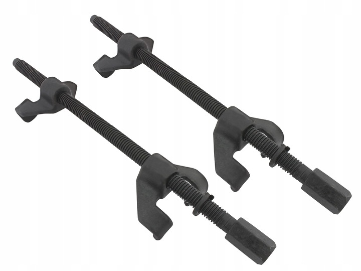 Набор съемников 380 мм для пружин подвески. Адаптировано ко всем типам пружин в стойках McPherson и независимых пружинах. Экстракторы работают с храповым механизмом 1/2". Тонкая резьба облегчает работу пружины под нагрузкой. Безопасность при работе обеспечивают специально профилированные двуплечие рукоятки.