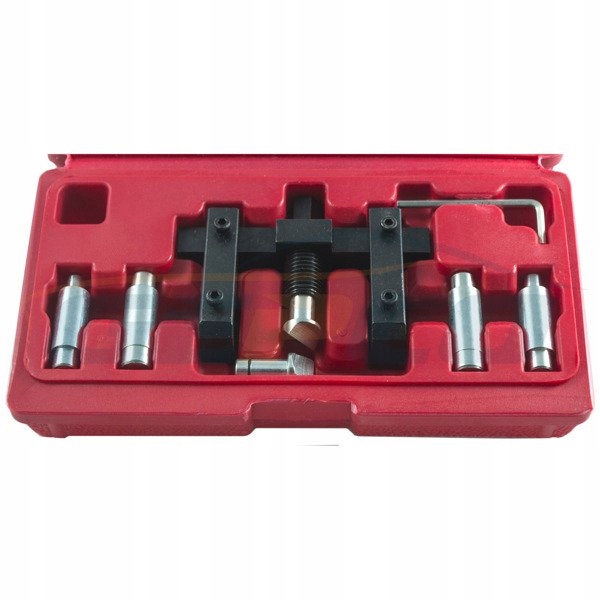 Профессиональный набор для монтажа и демонтажа пружины, амортизаторы из хомута. Предотвращает повреждение ступицы. Регулируемое расстояние между рычагами позволяет располагать головку по центру или смещению от центра.