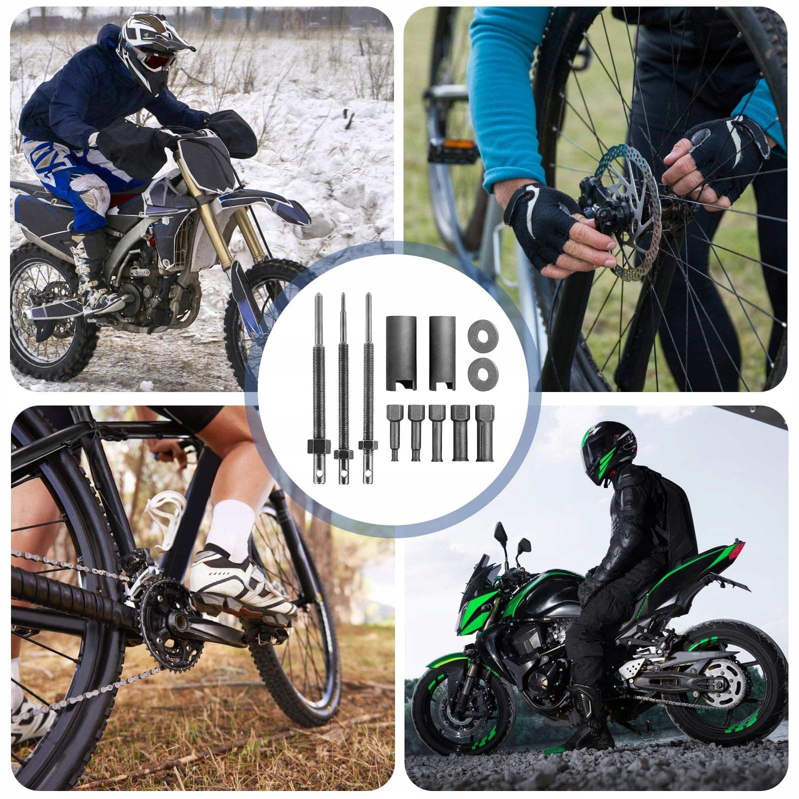 [Применение] Съемник внутреннего подшипника подходит для колес мотоциклов, велосипедных колес, автоматических рулевых колес, подшипников генератора, подшипников машин и т. д.