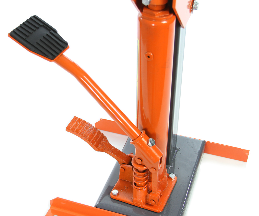 Это инструмент, который пригодится при замене пружин и амортизаторов. Вся работа основана на гидравлическом приводе, управляемом двумя ножными рычагами - один из них отвечает за подъем поршня привода, другой - за контролируемое опускание.