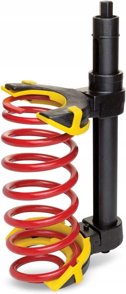 Профессиональный набор для снятия рессор легковых автомобилей и грузовых фургонов. Наш набор ценится за универсальность – его можно использовать во многих автомобилях. Все элементы набора изготовлены из очень прочной, толстой стали, выдерживающей большие сжимающие усилия. Преимуществом съемников этого типа является высокая сжимающая сила, распределяемая по большой поверхности, что позволяет избежать повреждения пружин и риска поломки съемника. Зажимы имеют крышки, защищающие пружину от царапин. Кроме того, съемник можно использовать, не снимая колонку. Наш набор ценится за свою универсальность и подходит для большинства колонок легковых автомобилей и грузовых фургонов. Дополнительно в комплект входит переходник, позволяющий работать с различными типами прогрессивных пружин. Благодаря переходнику комплект можно использовать не только для обычных, но и для конических пружин.