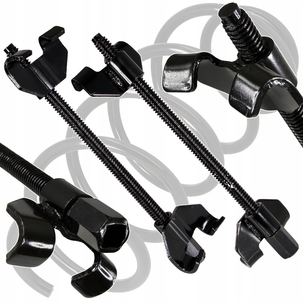 Сжиматели пружин незаменимы при профессиональном обслуживании шасси. Адаптировано ко всем типам пружин в стойках McPherson и независимых пружинах. съемники работают с трещоткой 1/2". Имеют тонкую резьбу, что облегчает работу под пружиной. Работа безопасна благодаря специально профилированным двуплечим рукояткам.