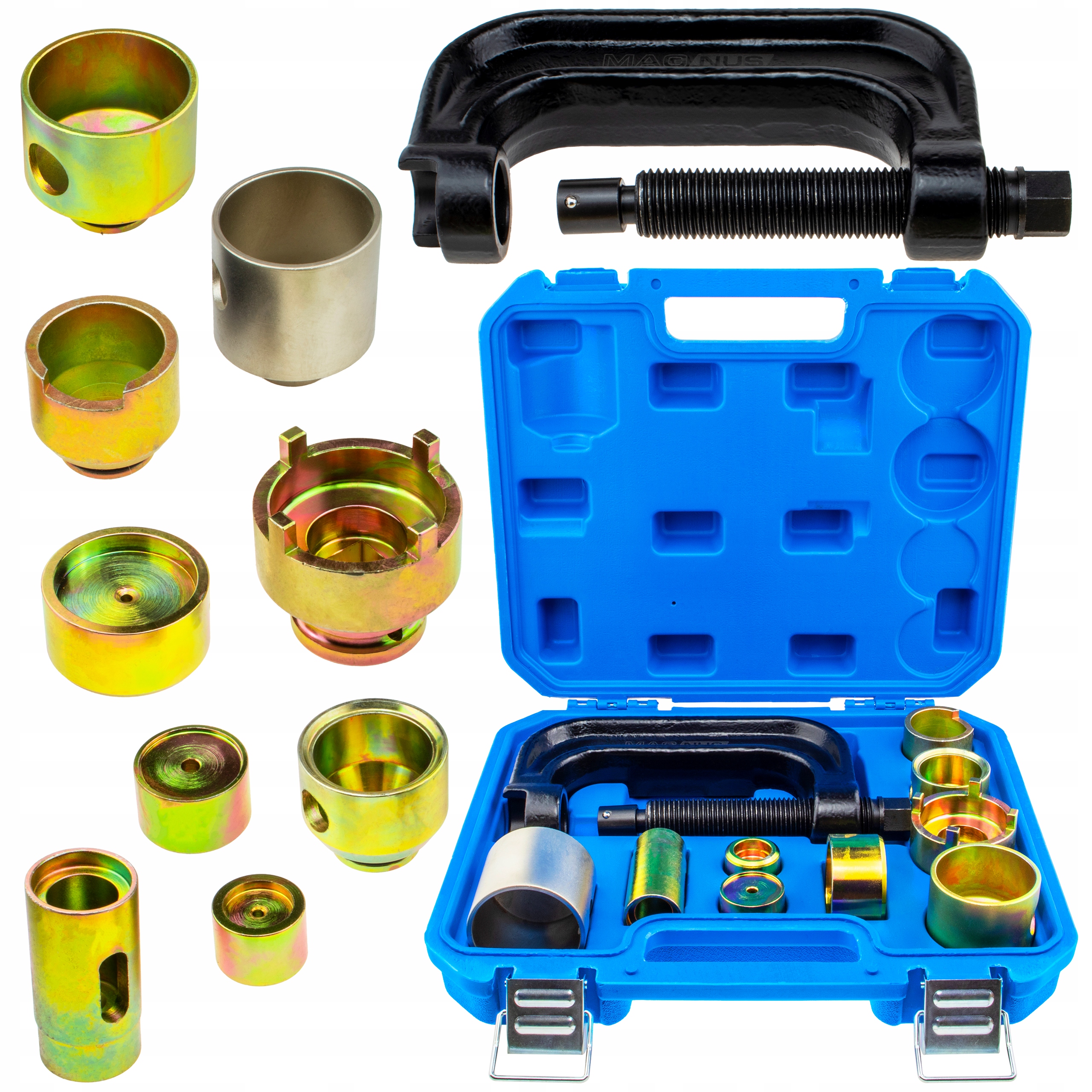 В наборе 10 элементов, позволяющих обслуживать (устанавливать и демонтировать) отдельные шаровые опоры подвесок Mercedes.