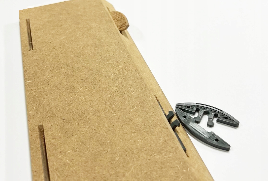 Соединитель FAST имеет специальные запатентованные режущие кромки, которые вгрызаются в материал во время установки, обеспечивая немедленную стабильность соединения без необходимости использования клея. В отличие от классических буковых планок, сборка требует вставки и забивания соединителя по дуге в гнездо с помощью молотка или киянки.