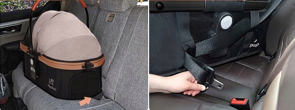 【Удобное и уникальное безопасное оборудование для домашних животных】Домашнее животное Переноска имеет безопасный ремень безопасности и двойную кнопку, обеспечивающую быстрый доступ к животному с каждой стороны переноски, ремень безопасности с защелками хорошо фиксирует переноску после установки на место.