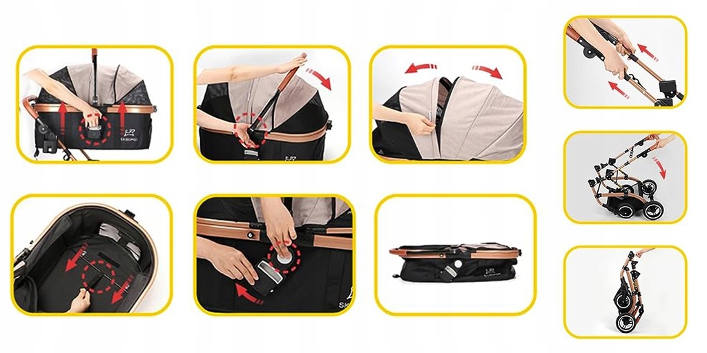 ✅СЪЕМНАЯ СКЛАДНАЯ: Хорошо сделанная роскошная коляска для домашних животных является съемной, легко отсоединяется от стальной рамы и может использоваться в качестве автокресла. Два ремня с обеих сторон для удобства переноски. Специальный складной механизм на ручке, который можно использовать одной рукой, легко нажимать и позволяет сложить его за считанные минуты, чтобы он поместился в багажнике автомобиля во время путешествия, с крючком сбоку для надежно закрепите его