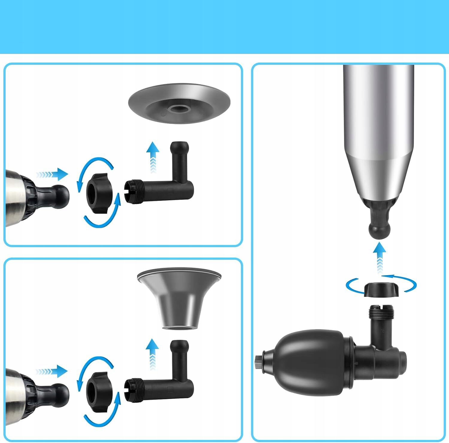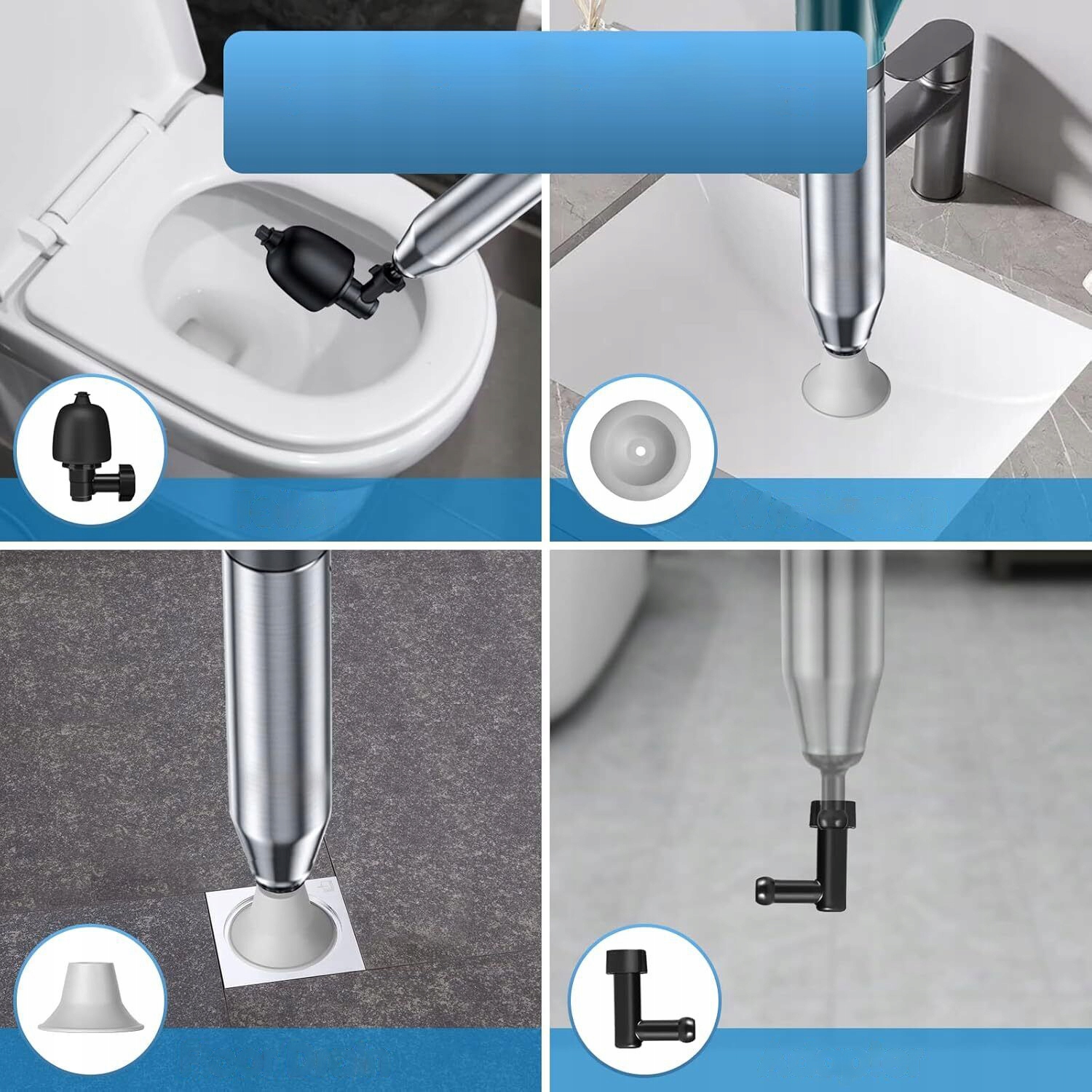 🚽🚽- Оснащен 4 различными насадками для прочистки для удовлетворения различных потребностей в очистке, может использоваться для туалетов, ванн, приземистых унитазов, сливов в полу, раковин, труб и т. д.