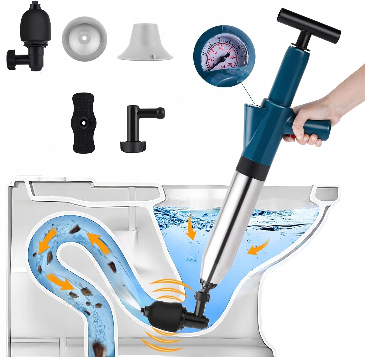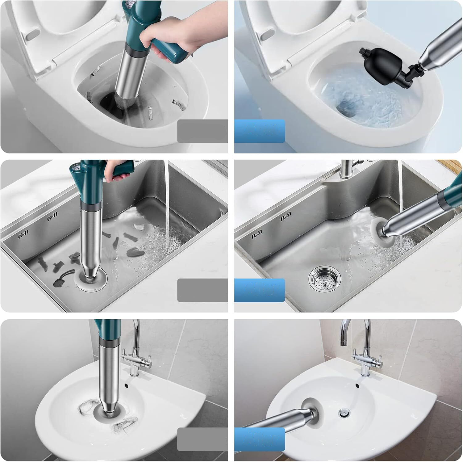 🚽🚽- Простота в использовании: просто надуйте подушку безопасности и вставьте ее в заблокированную область, затем нажмите кнопку подачи воздуха, чтобы быстро очистить самые стойкие канализационные засоры.