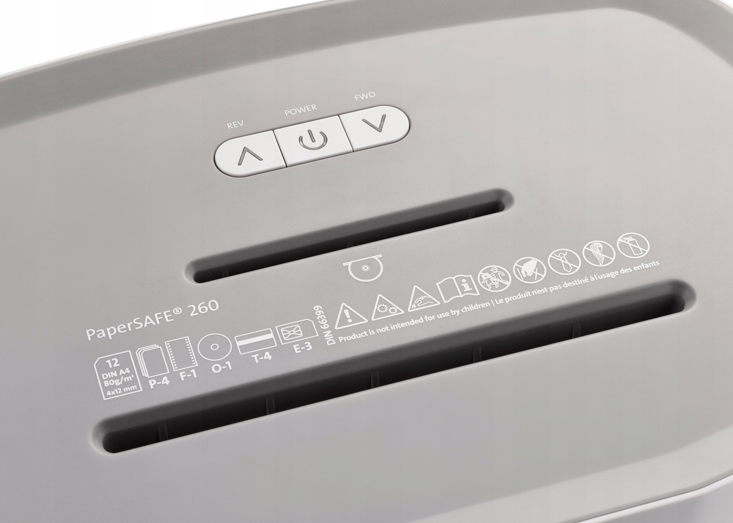Два отдельных режущих механизма для бумаги, компакт-дисков, DVD-дисков, чеков и кредитных карт — 4 полоски шириной 3,0 см