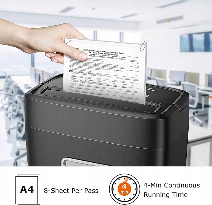 - ▸ Емкость шредера на 8 листов: шредер может измельчать до 8 листов бумаги одновременно, а также уничтожать скрепки и скрепки, а также отдельные кредитные карты. .