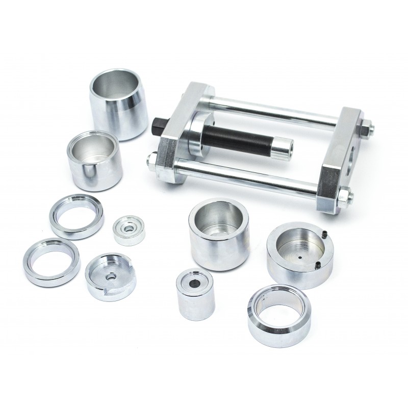 В состав пресса входит набор переходников, втулок, предназначенных для разборки и сборки шаровых пальцев в подвеске таких марок и моделей, как: