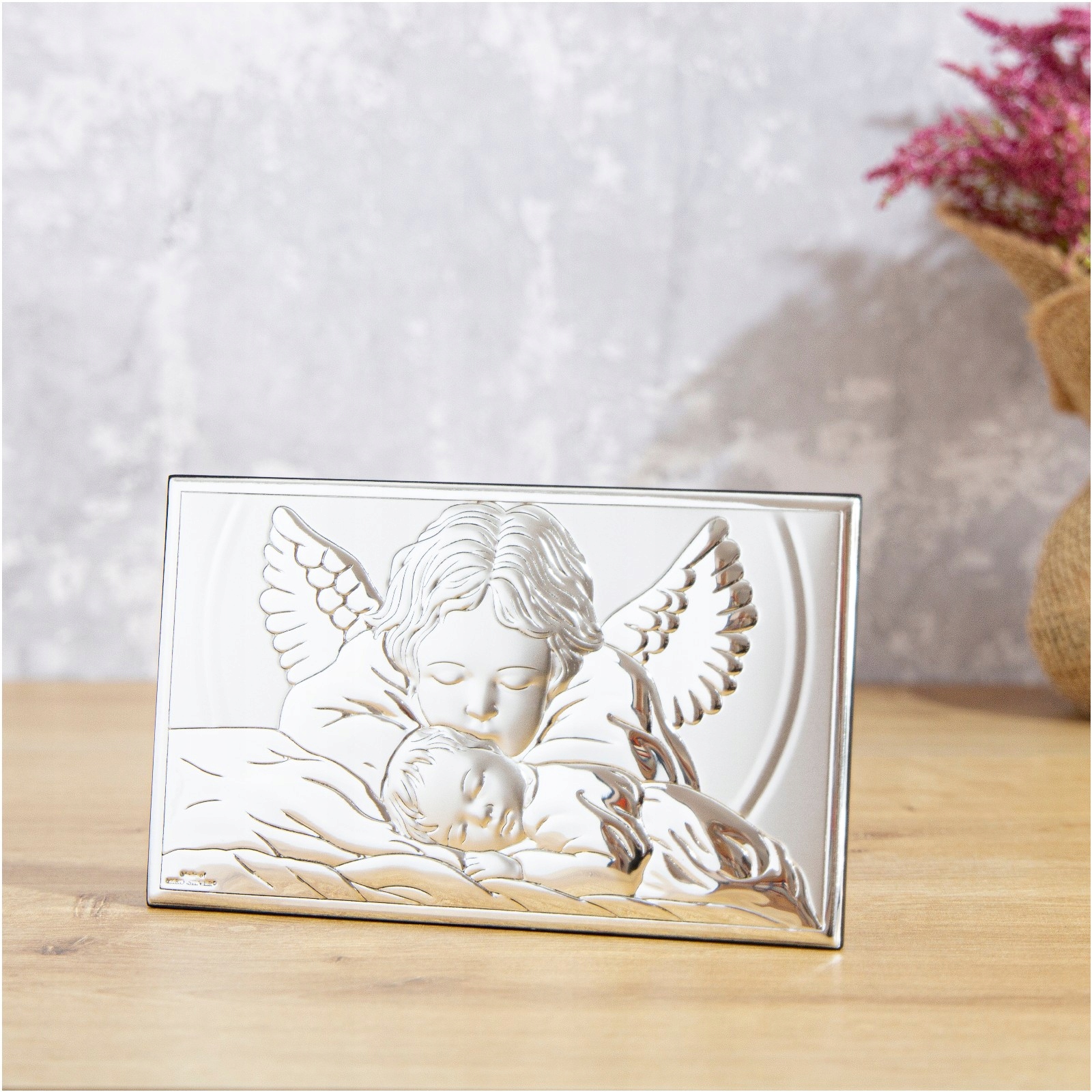 Картина с изображением Ангела-Хранителя, наблюдающего за ребенком, станет прекрасным подарком на Крещение, Первое Причастие или день рождения ребенка. Высокое качество изготовления, изысканная отделка, элегантная упаковка - все это создает уникальный сувенир на долгие годы... Картина еще и чрезвычайно практична: у нее есть вставная подставка, поэтому ее можно разместить на шкафу или комоде или повесить. на стене.