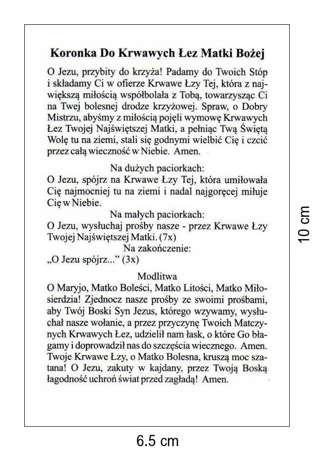 Оплачивая «Изображение Венчика Кровавых Слез Богородицы», вы можете быть уверены, что данное изделие из каталога «Картинки» будет доставлено из Польши и проверено на целостность. В цене товара, указанной на сайте, учтена доставка из Польши. Внимание!!! Товары для Евросоюза, согласно законодательству стран Евросоюза, могут отличаться упаковкой или наполнением.