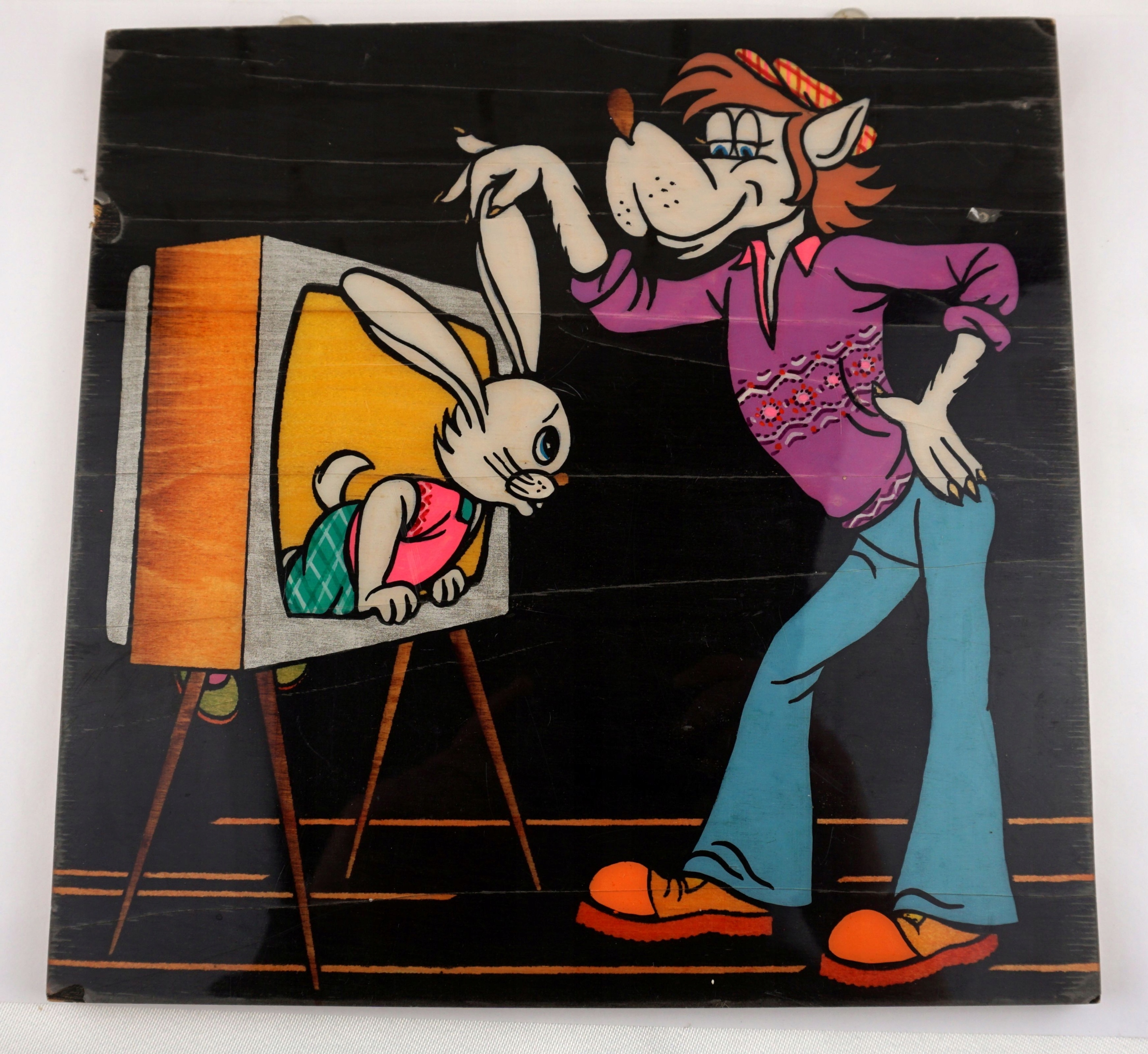 Изображение волки и Zając подписала древесину около 28x28 см 1975