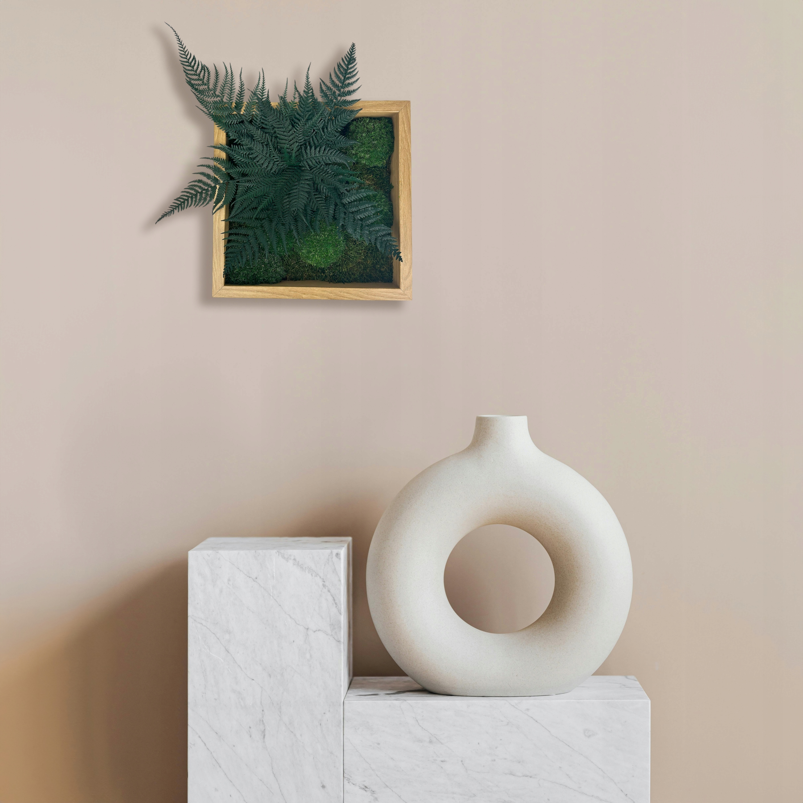 изображение мха и растений, стабилизированных в раме, имитирующей дуб - гармония природы во внутренней части h1>