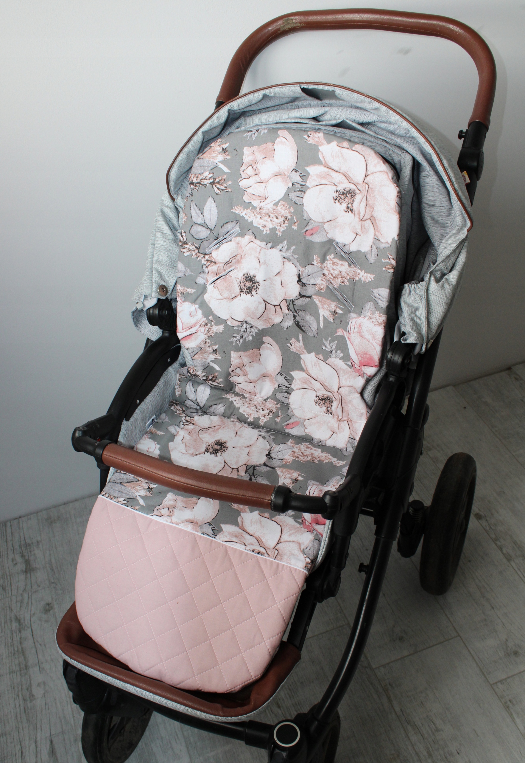 Узоры: дикая роза на серой + стеганом грязном розовом