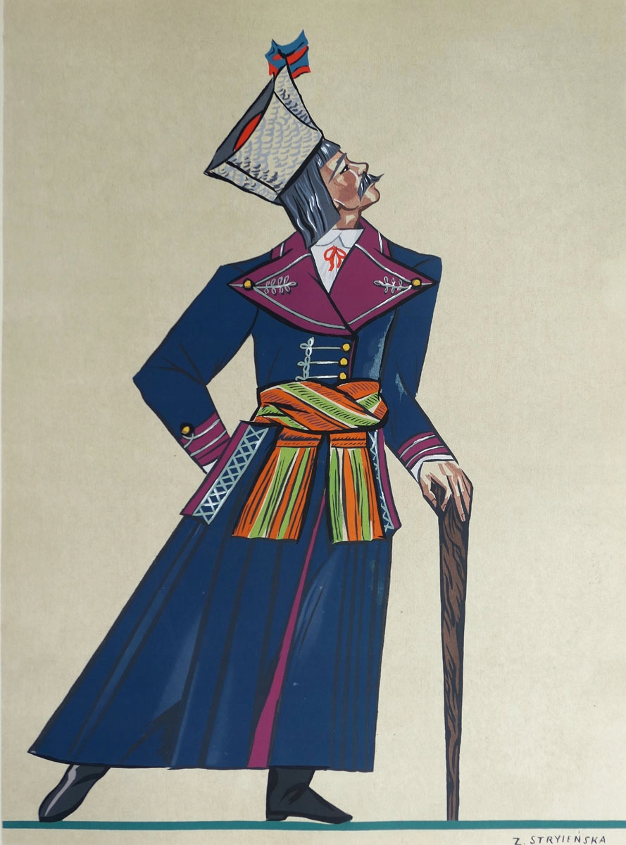 Графика поступает из портфеля: Z. stryjeńska, костюмы польских крестьян. С введением и примечаниями Thadee Seweryn, куратора этнографического музея в Кракове, изд. C. Szwedzicki, Nice 1939. Bazcza 7. Литература: «Зофия Страйньска. Каталог выставки Национального музея в Кракове», Kraków 2008, p. «Зофия Стриджска», światoslaw Lenartowicz, Bosz Publishing, 2018, с