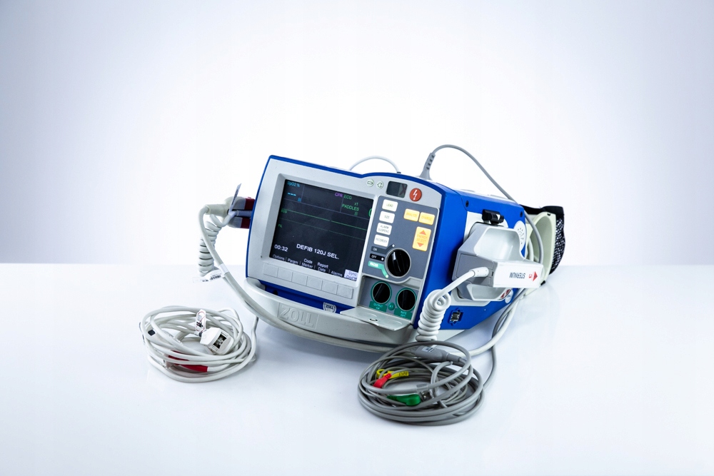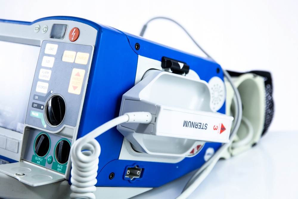 Используется дефибриллятор. Используется, полностью функциональный. Техническое состояние, видимое на фотографиях.