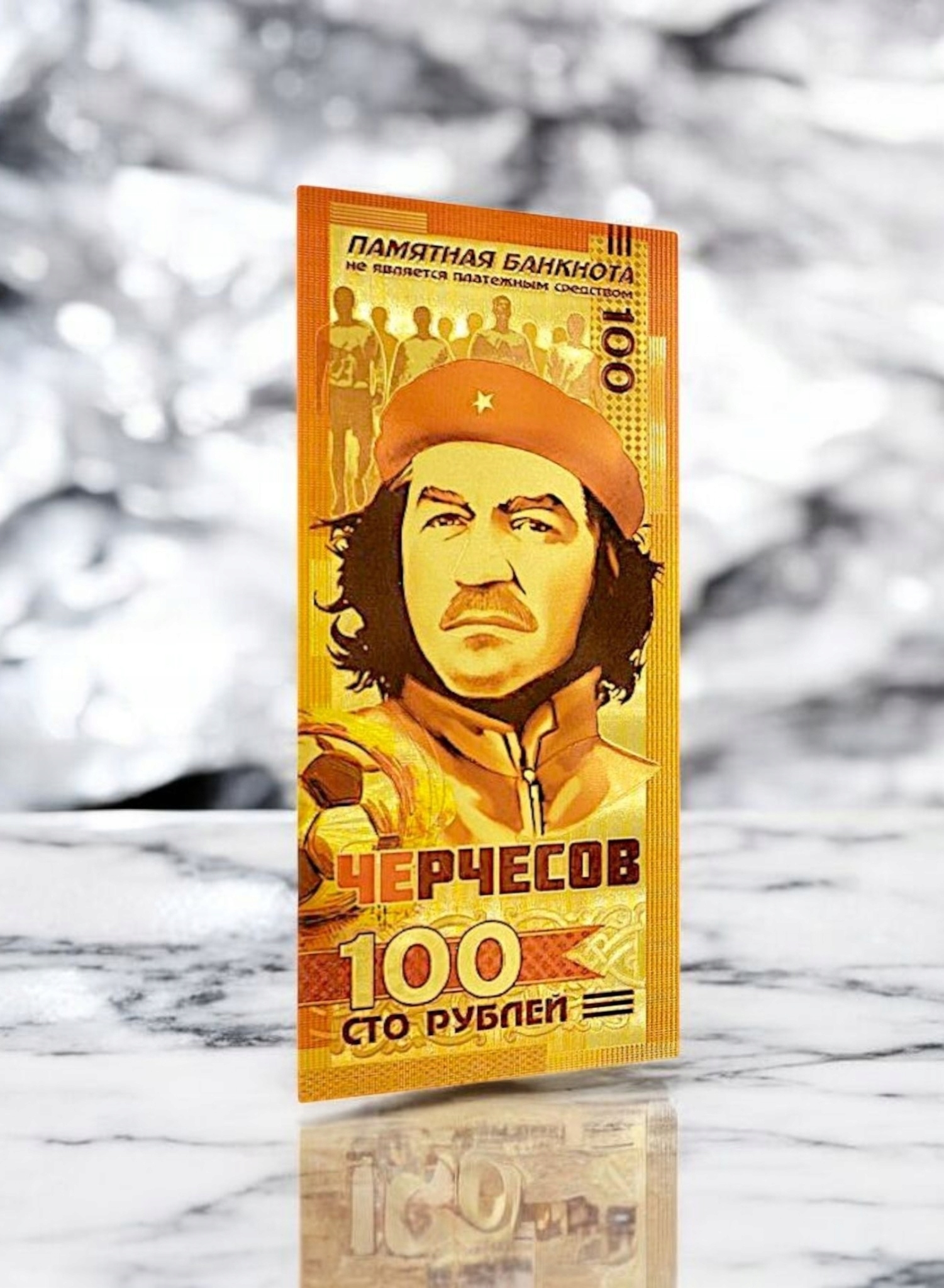 Уникальное удовольствие для коллекционеров и энтузиастов футбола - банкнота причудливого коллекционера с деноминацией в 100 рублей, посвященная чемпионату мира FIFA 2018 года в России. На аверсе есть Станислав Черсени, легендарный тренер российской сборной, представленного в культовом стиле Че Гуевари, который дает банкноту необычный характер и художественное послание. h2>