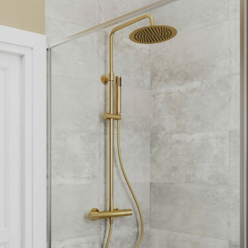 - Набор содержимого смеситель для душа (термостатический), душевая штанга, душевая трубка, монтажный комплект, шланг, руководство пользователя