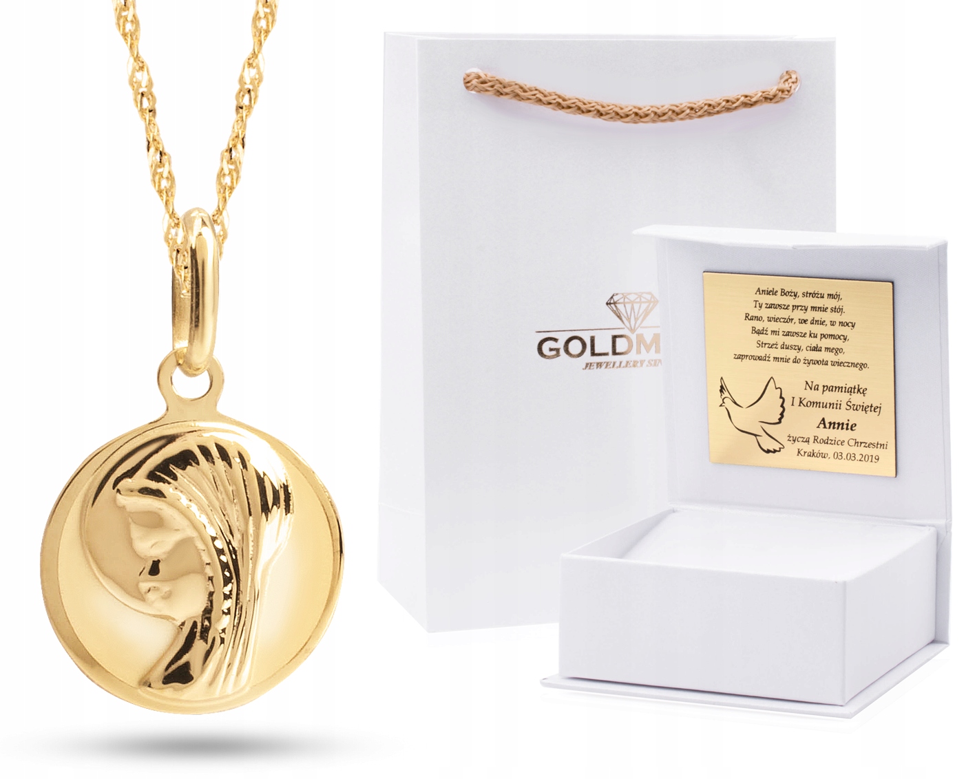 Золотой набор, Медаль с цепью полностью сделана из золота попыток 585. благодаря бесплатной гравировке подарок станет еще более индивидуальным. Ювелирные изделия, которые мы предлагаем за каждую покупку, вы получите бесплатно, выбранную коробку с гравюрами.