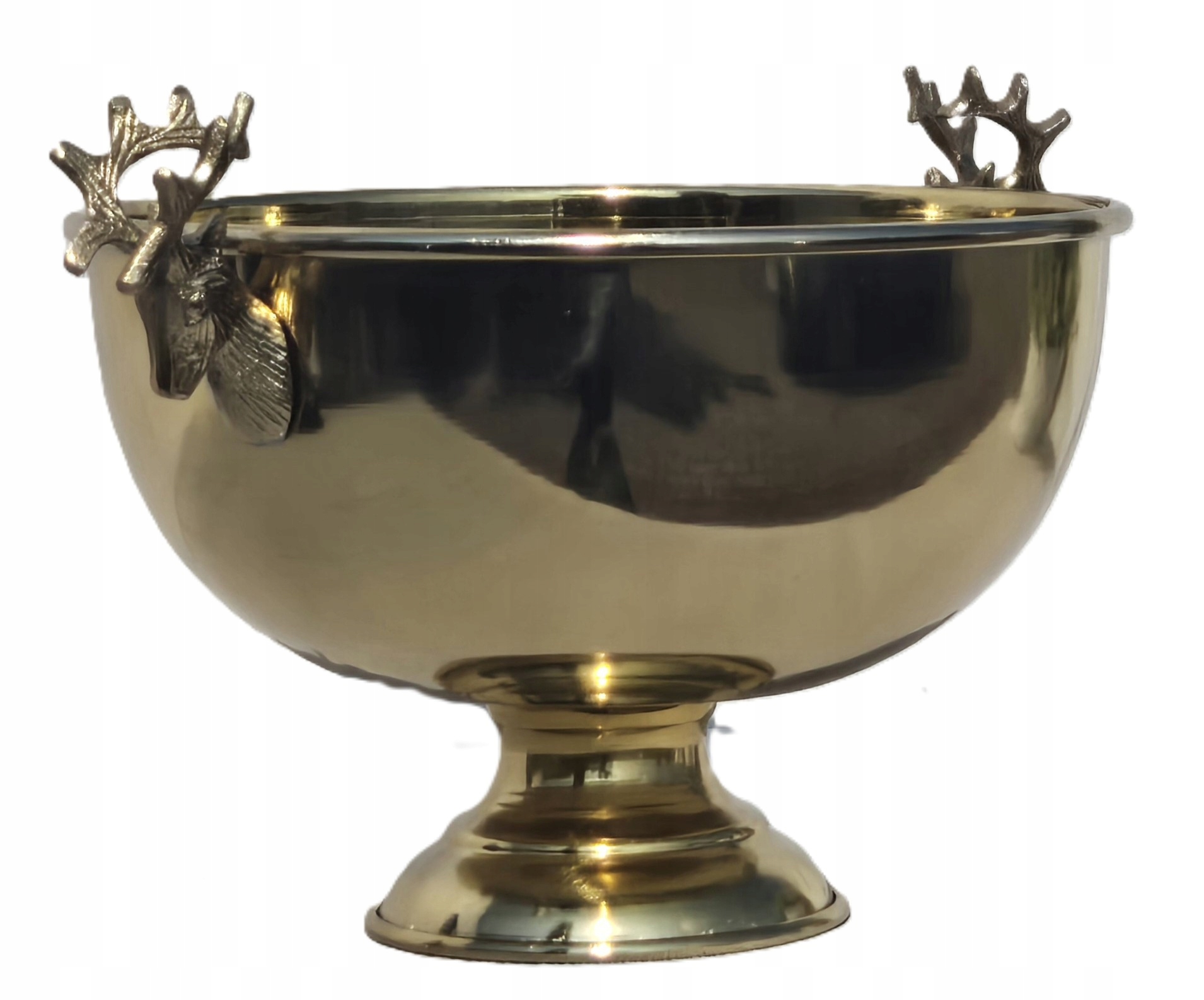 Создайте неповторимый акцент в своем интерьере с помощью этого элегантного золотого блюда, украшенного ручками в форме оленьих голов.