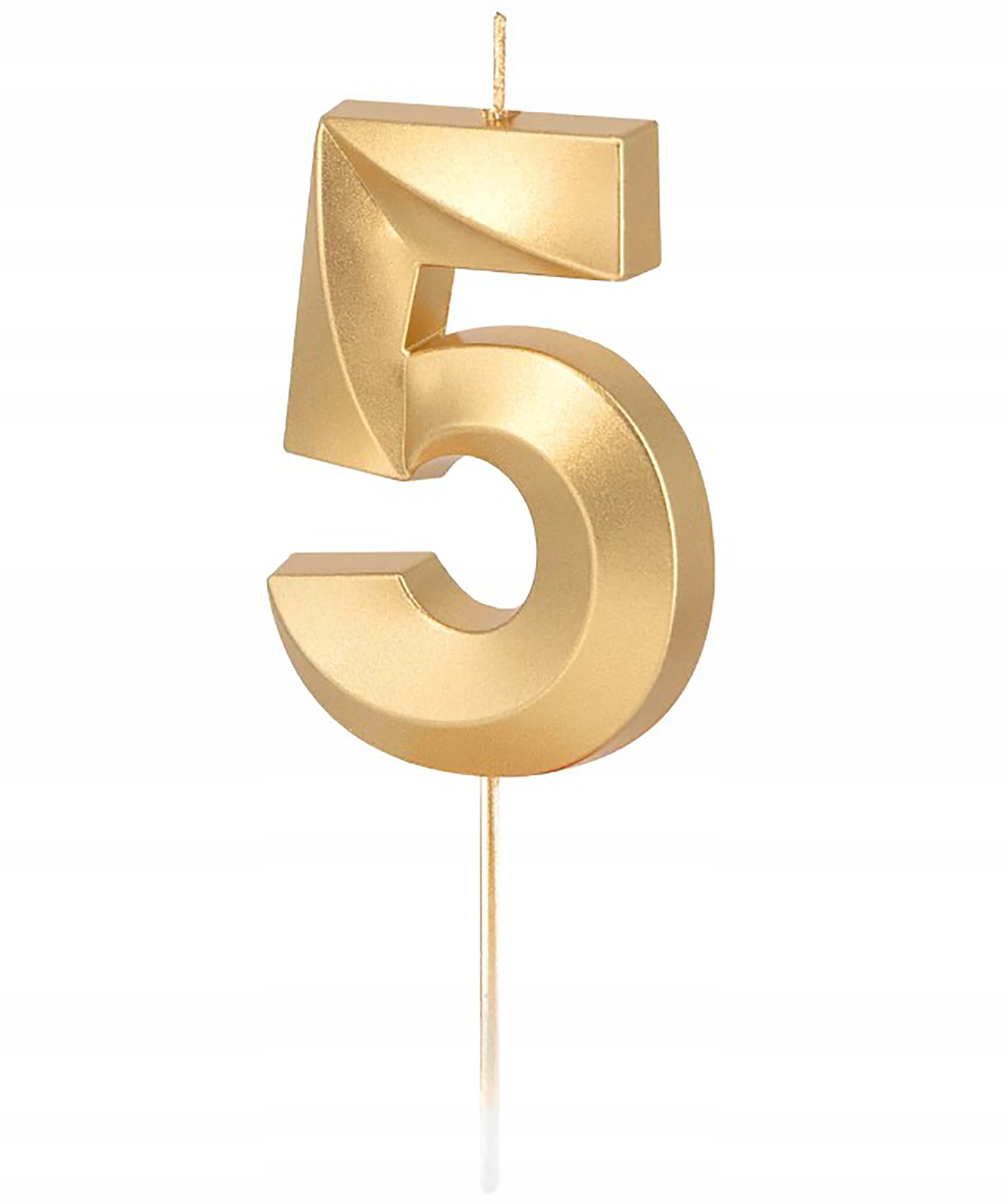 ЗОЛОТАЯ СВЕЧА, МЕТАЛЛИЧЕСКАЯ ЦИФРА 5, ПЯТЬ УКРАШЕНИЕ ТОРТА НА ДЕНЬ РОЖДЕНИЯ