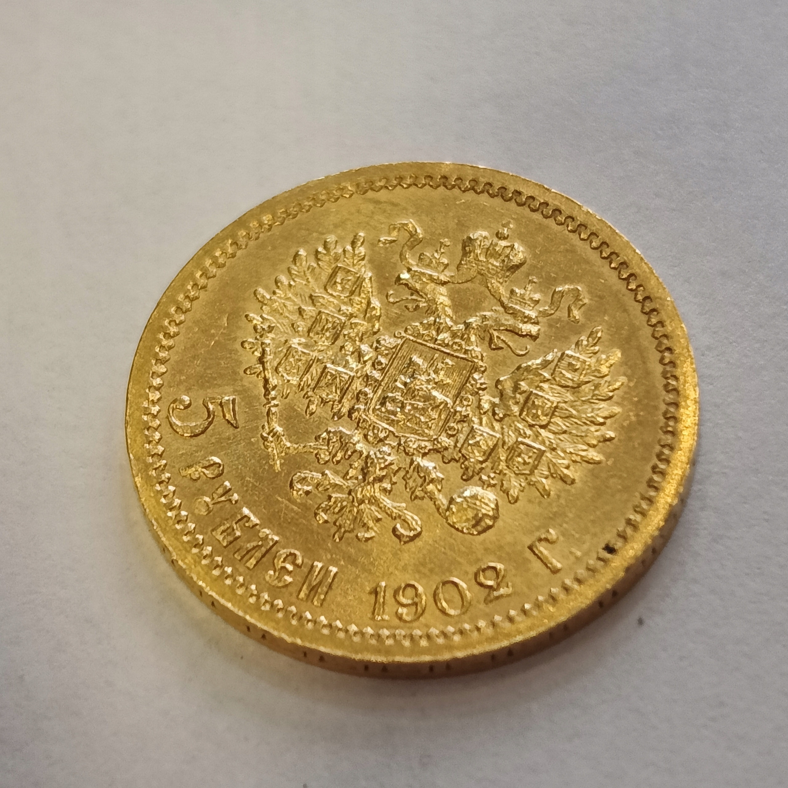 Золотая монета 5 рублей Николай II 1902 г. РОССИЯ.