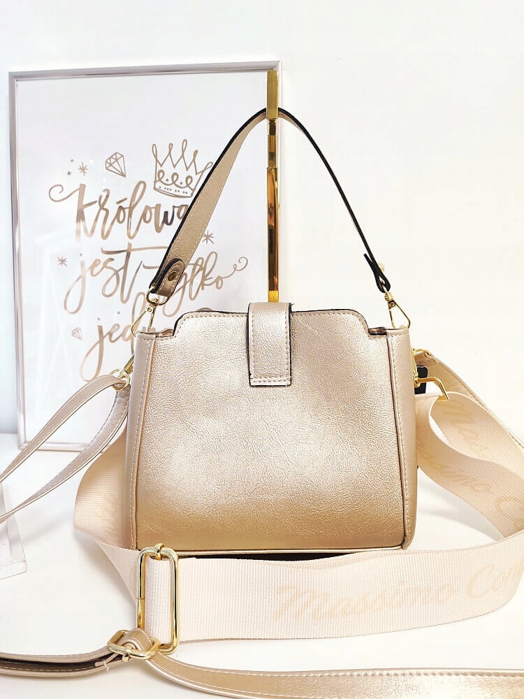 Сумка-сундук из коллекции Massimo Contti выполнена из высококачественной золотой эко-кожи.