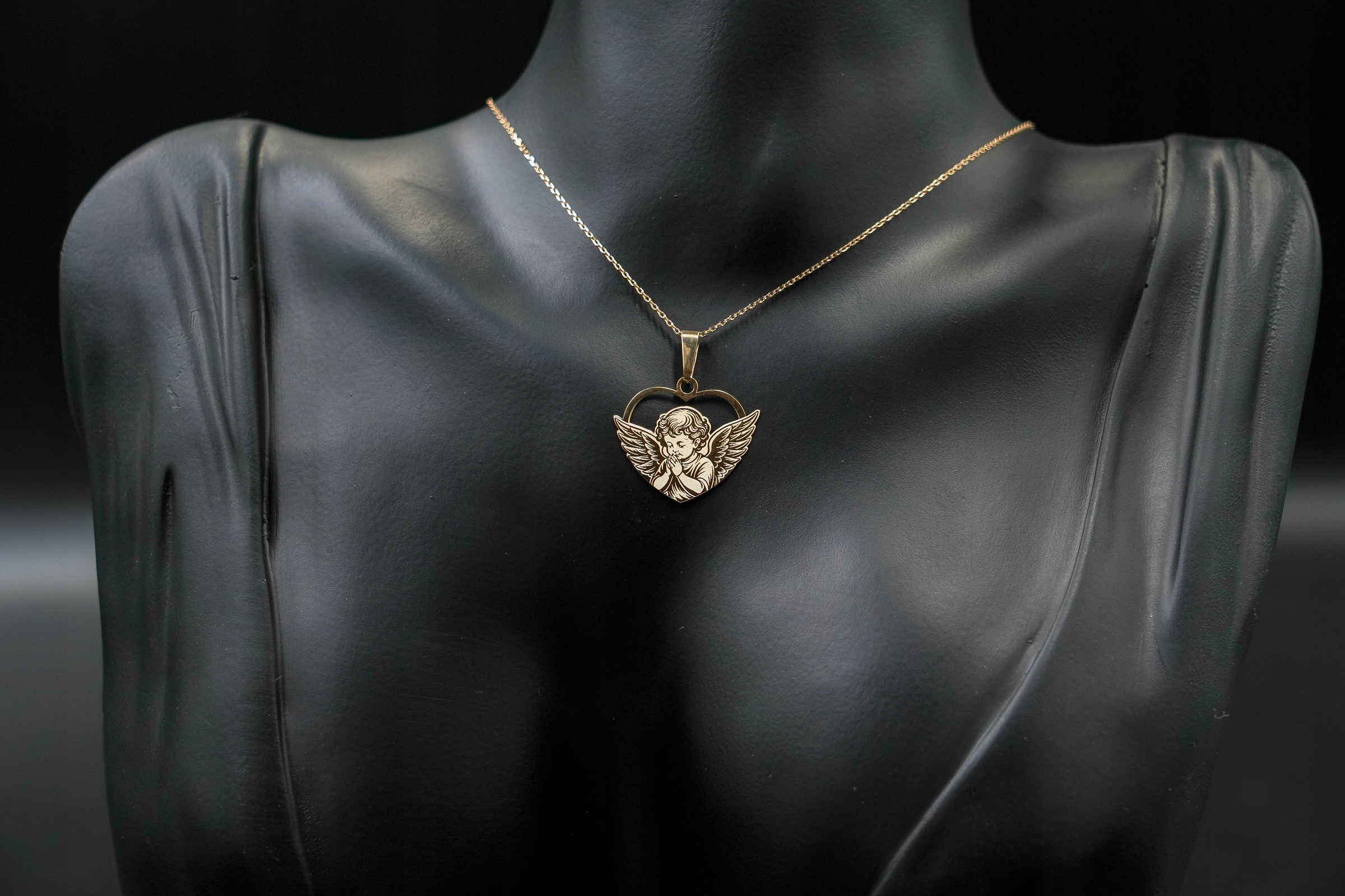 Элегантный золотой кулон, сделанный из высококачественной золотой попытки 585 , изображающий образ моляющего ангела, встроенного в тонкое сердце. Символизм подвески делает его отличным выбором для дара для крещения, первого святого причастия или других важных религиозных праздников.
