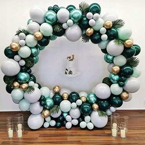 Украшение в виде круга в настоящее время является одним из самых популярных украшений для вечеринок. Можно прикрепить воздушные шары, тюль, зеленые растения, декоративные цветы, световые гирлянды и т. д.