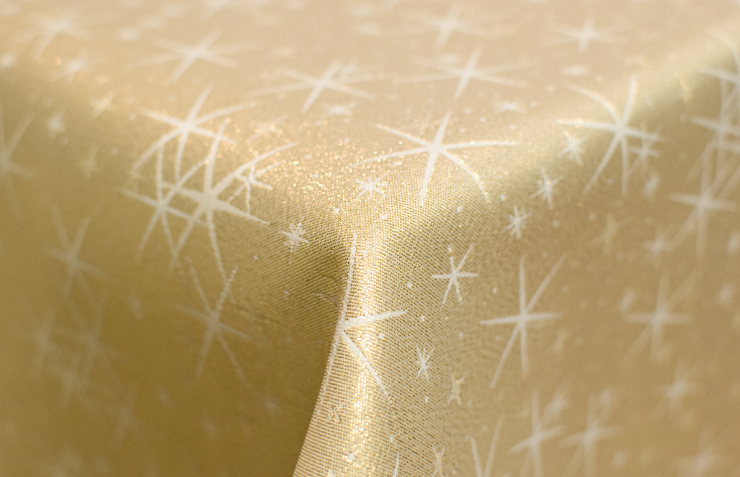 Роскошная (премиум -класс), красивая золотая скатерть со сливочными звездами. Ткань блестящая, но она должна быть на Рождество. Класс и элегантность в высшем издании.