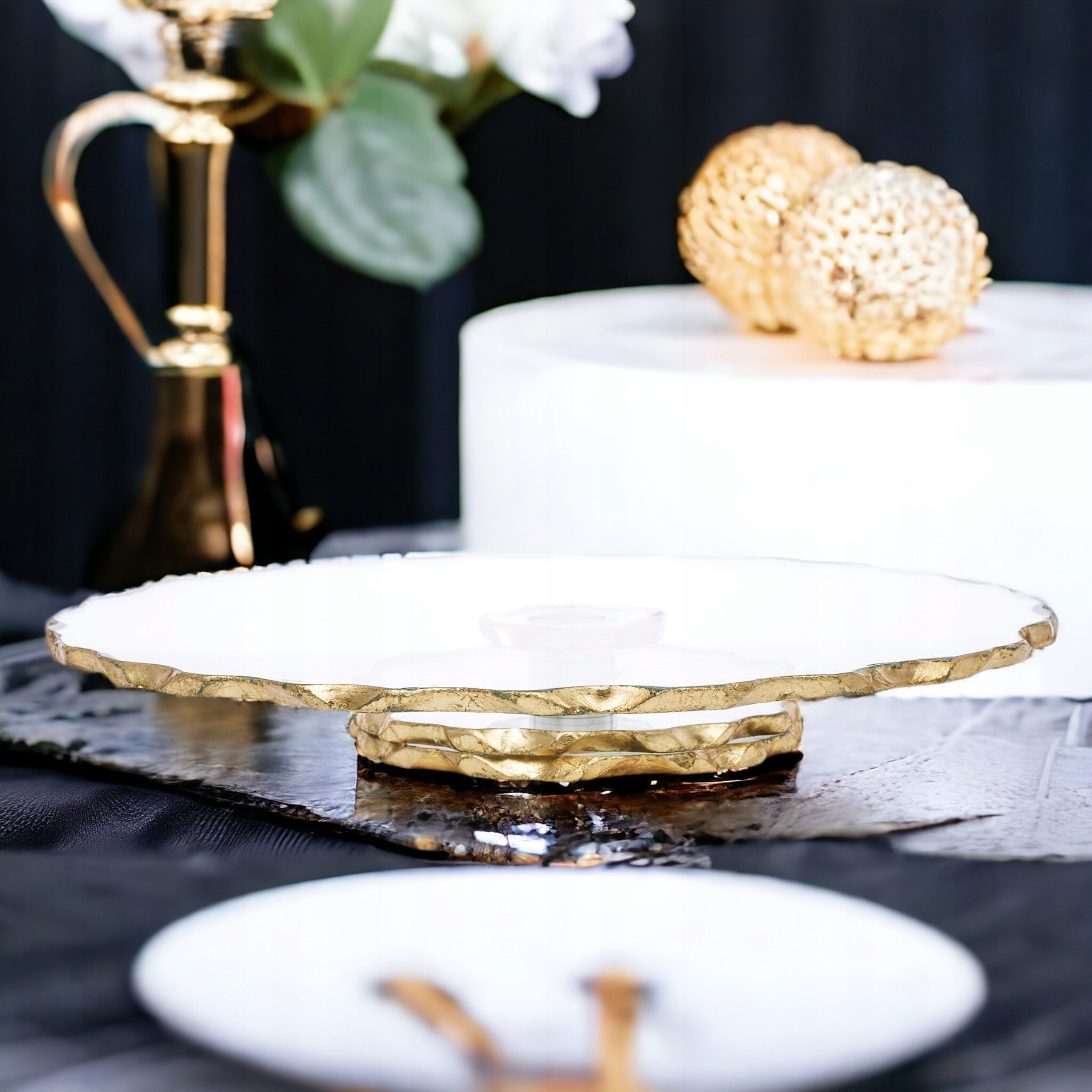 Золотая стеклянная тарелка для гламурного торта Taba 33 см