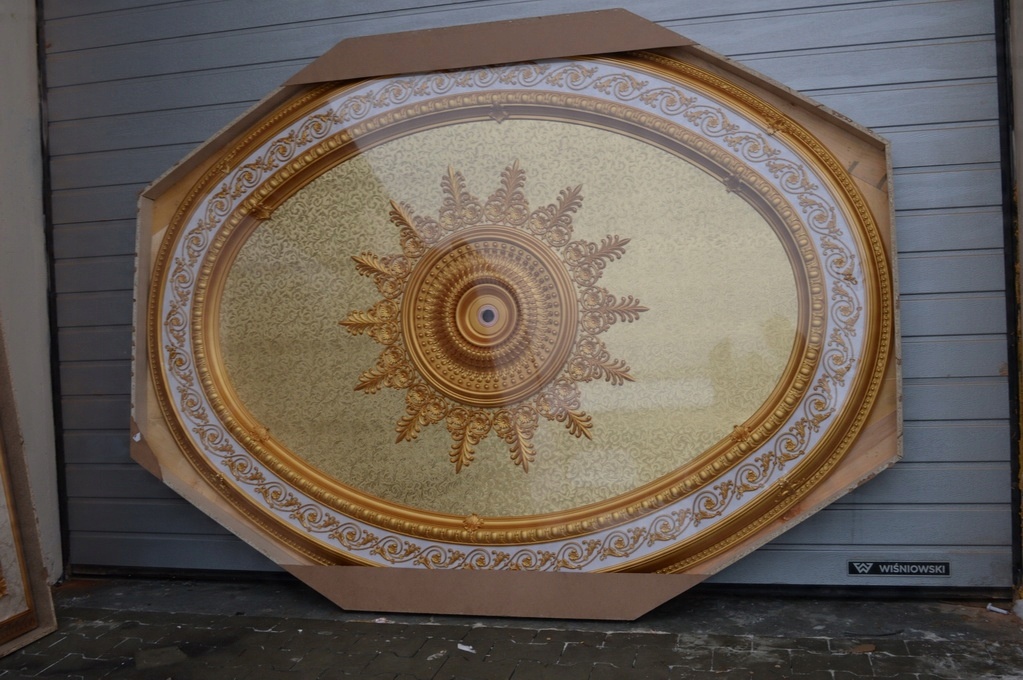 Золотой потолок розетка 240 x 180 см овальный эллипс - под люстрой