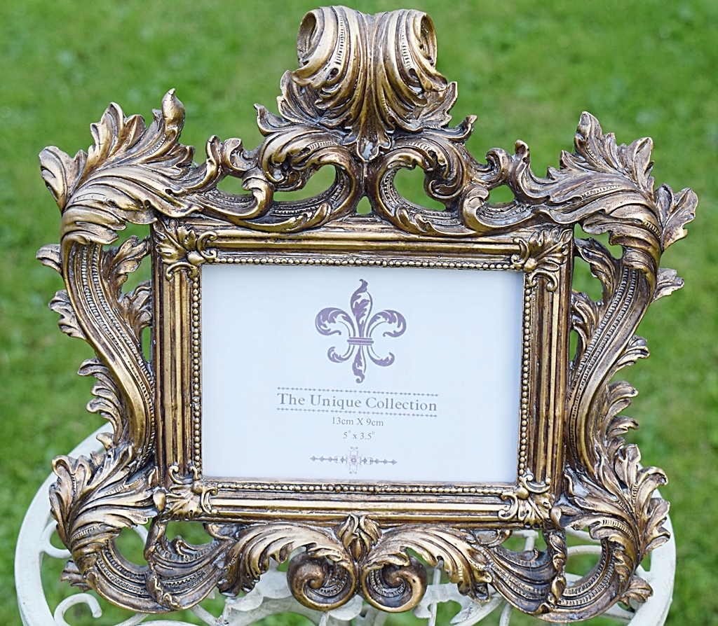 Привлекательная фоторамка. Изготовлен из смолы золотистого цвета. Благодаря чудесной форме размещенная в ней фотография выглядит изысканно, и вся эта вещь непременно станет украшением вашего дома или отличным подарком на случай.
