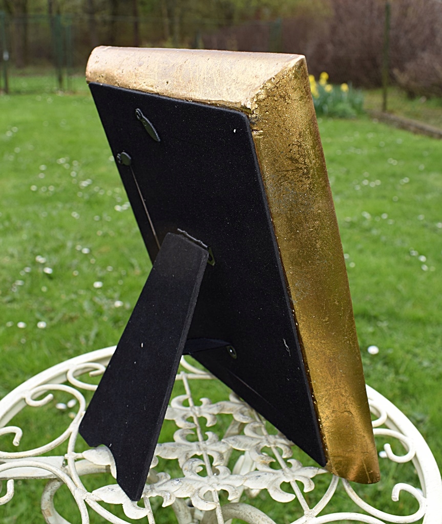 Привлекательная фоторамка. Изготовлен из смолы золотистого цвета. Благодаря чудесной форме размещенная в ней фотография выглядит изысканно, и вся эта вещь непременно станет украшением вашего дома или отличным подарком на случай.