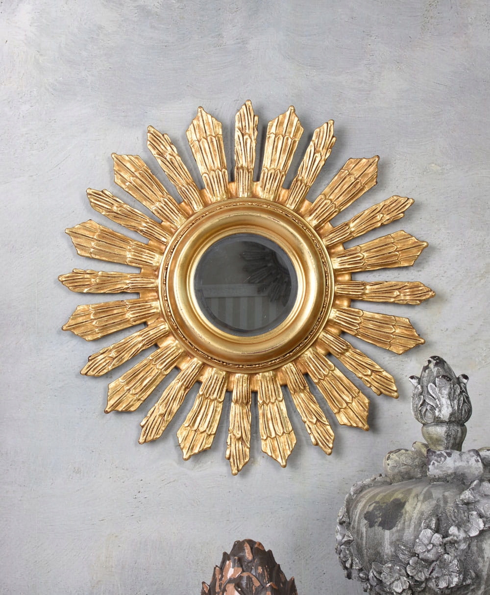 Мотив лучей, окружающих зеркало, относится к французскому барокко и иконографии Солнца Людовика XIV. Рама из дерева и штукатурки представляет высокий уровень ручной отделки. Благодаря этому зеркало выглядит как уникальный антикварный