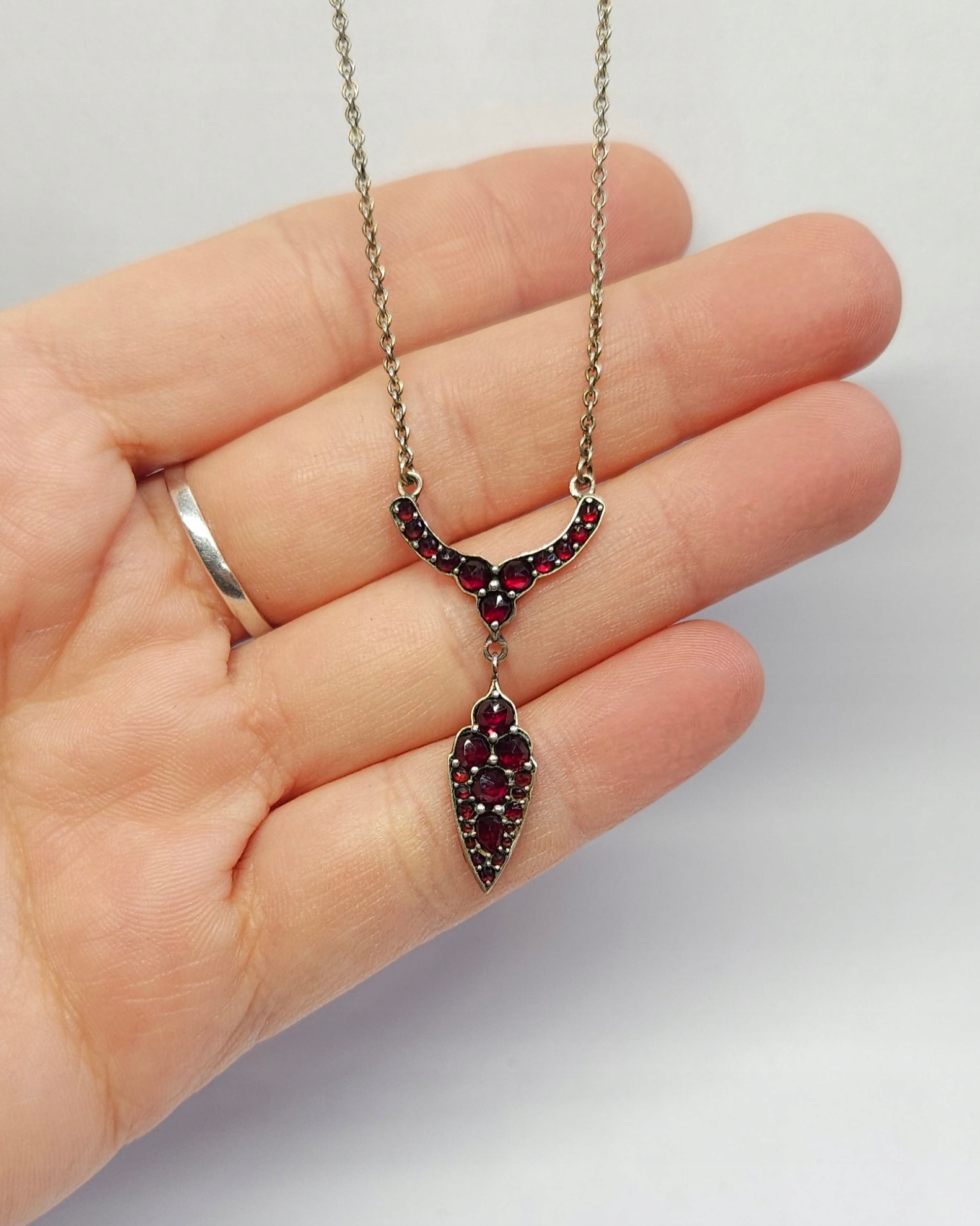Золотое ожерелье с гранатами, золотое серебро 0,835 пиропи 46,5 см