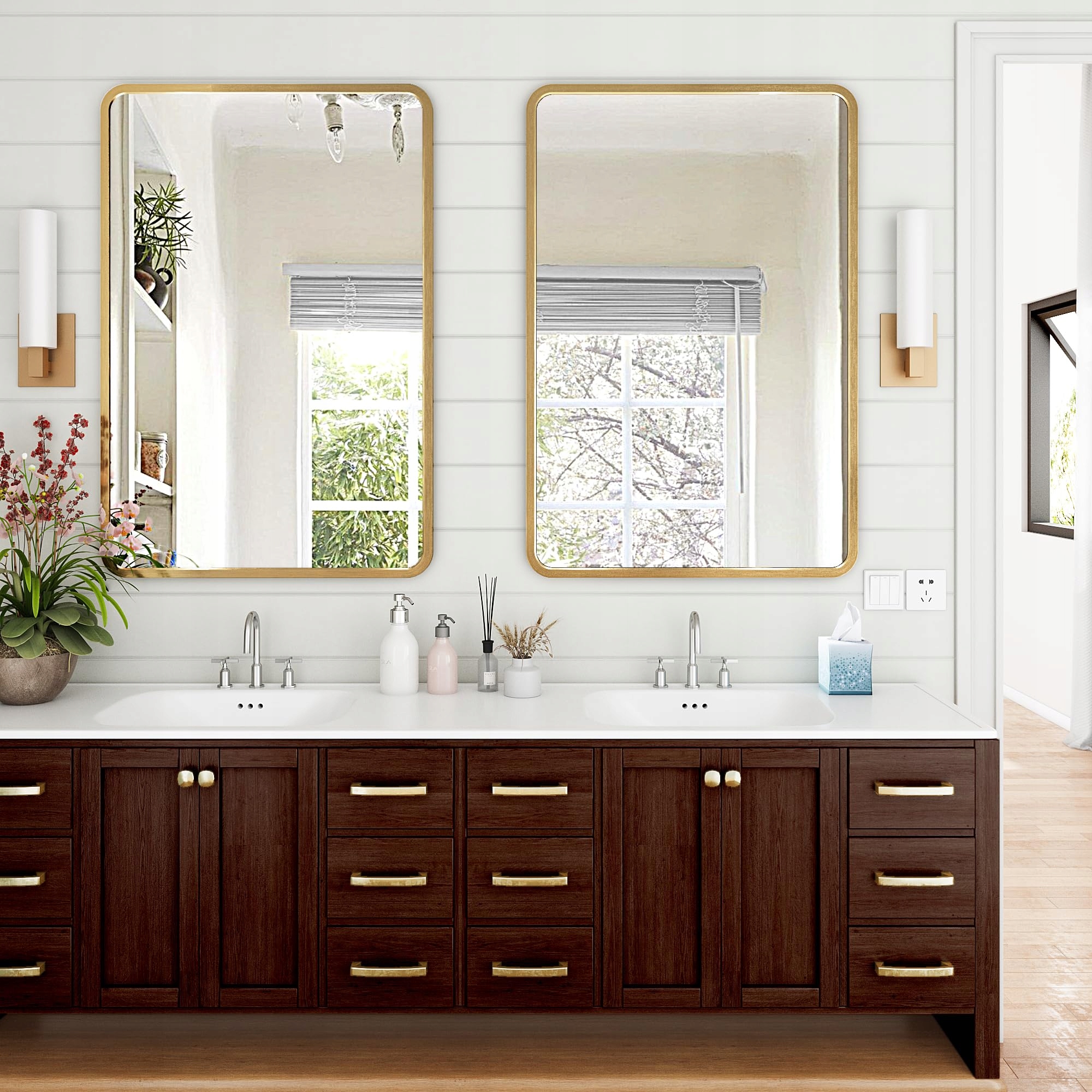 ЗОЛОТОЕ ПОДВЕСНОЕ ЗЕРКАЛО В АЛЮМИНИЕВОЙ РАМКЕ 60x90см С ЗАГРУГЛЕННЫМИ УГЛАМИ