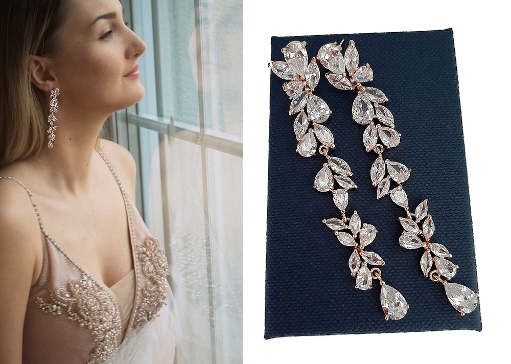 ЗОЛОТЫЕ ДЛИННЫЕ СВАДЕБНЫЕ СЕРЬГИ
