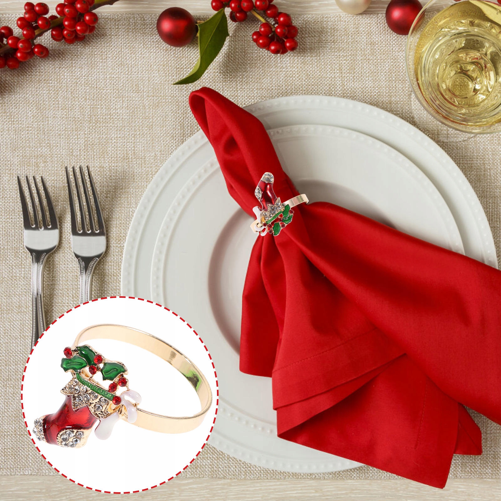 ЗОЛОТЫЕ КОЛЬЦА ДЛЯ САЛФЕТОК РОЖДЕСТВЕНСКИЕ ПРЯЖКИ ДЕРЖАТЕЛЬ ДЛЯ СТОЛОВЫХ ПРИБОРОВ