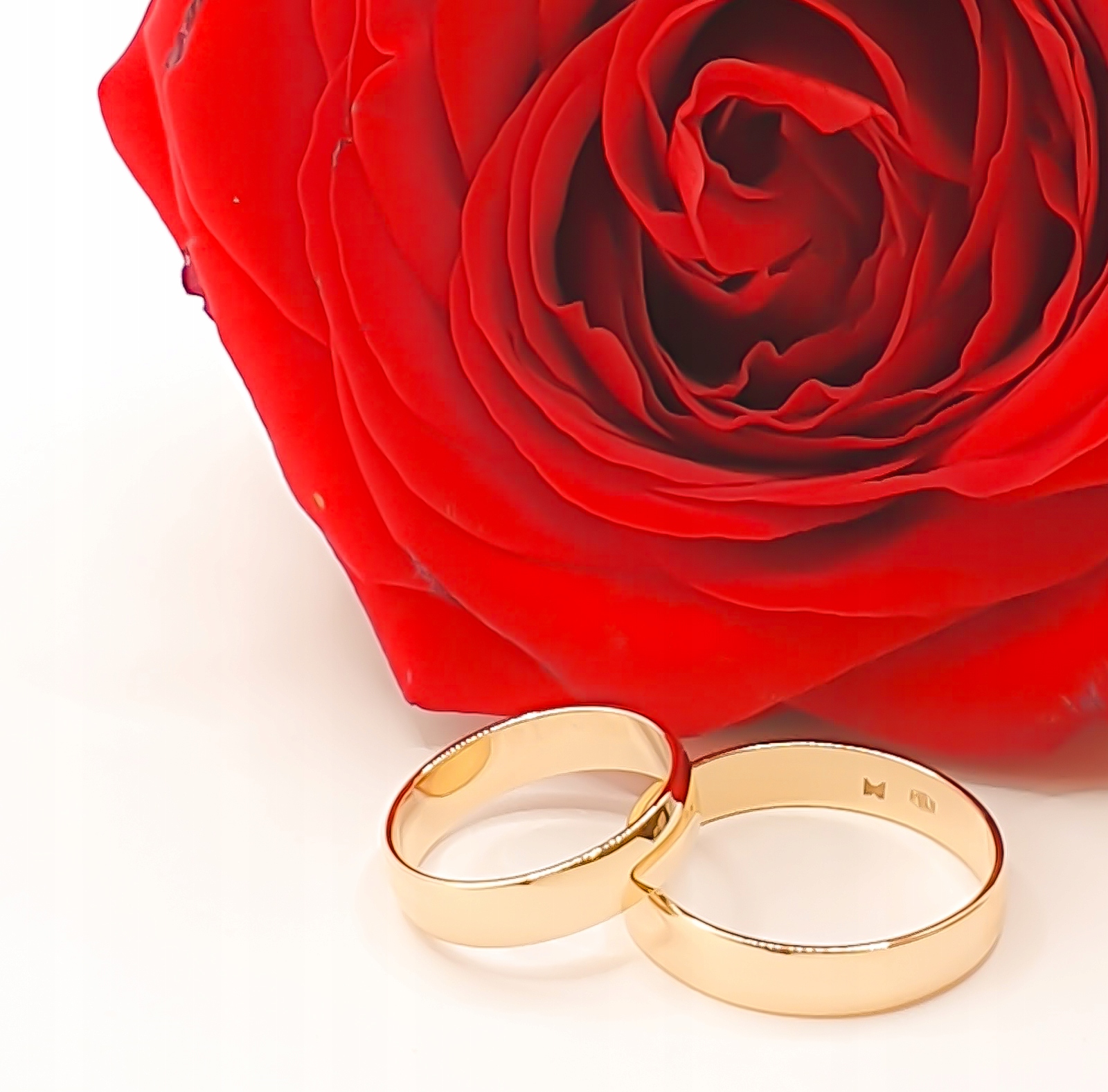 ЗОЛОТЫЕ КОЛЬЦА 585 ПОЛУКРУГНЯЯ 4 мм ГРАВИРОВКА - от руки
