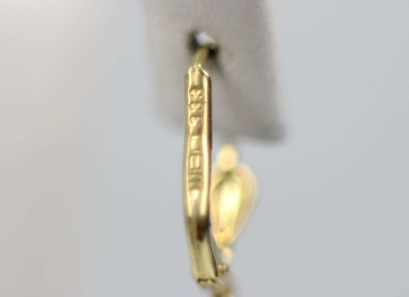 Элегантные висячие серьги 1930-х годов. Серьги из 8-каратного золота, подписаны на швензах пуансоном 333. Декоративная часть покрыта аквамаринами. Подлинность камней подтверждена измерительным прибором. Все в очень хорошем состоянии, застежки рабочие. Размеры: