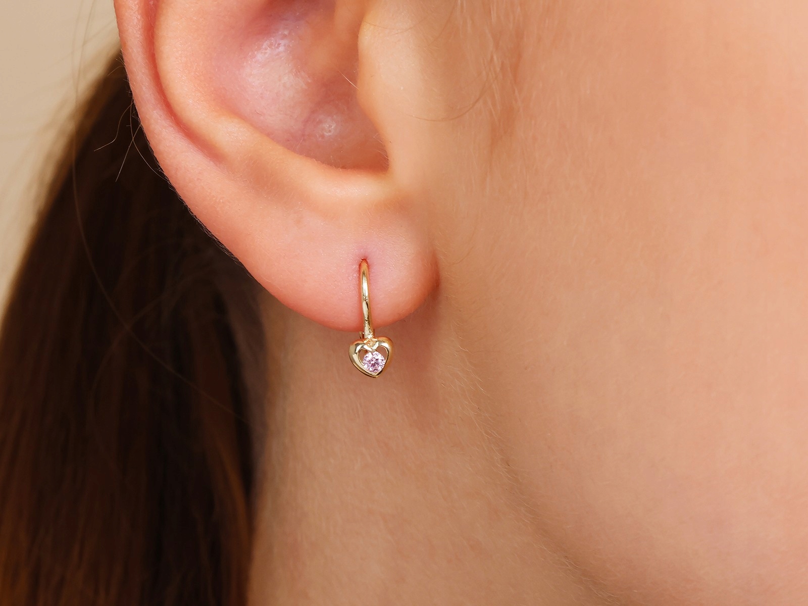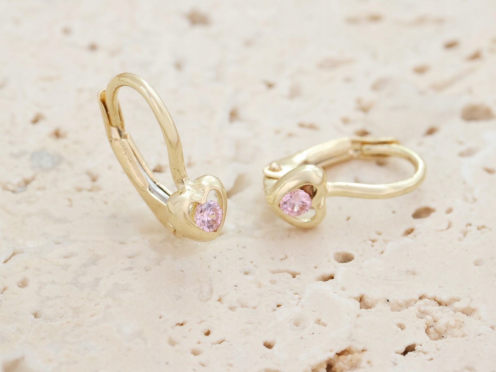 ЗОЛОТЫЕ ДЕТСКИЕ СЕРЬГИ СЕРДЕЧКИ, АНГЛИЙСКИЙ ЗАЖИМ 585 пробы