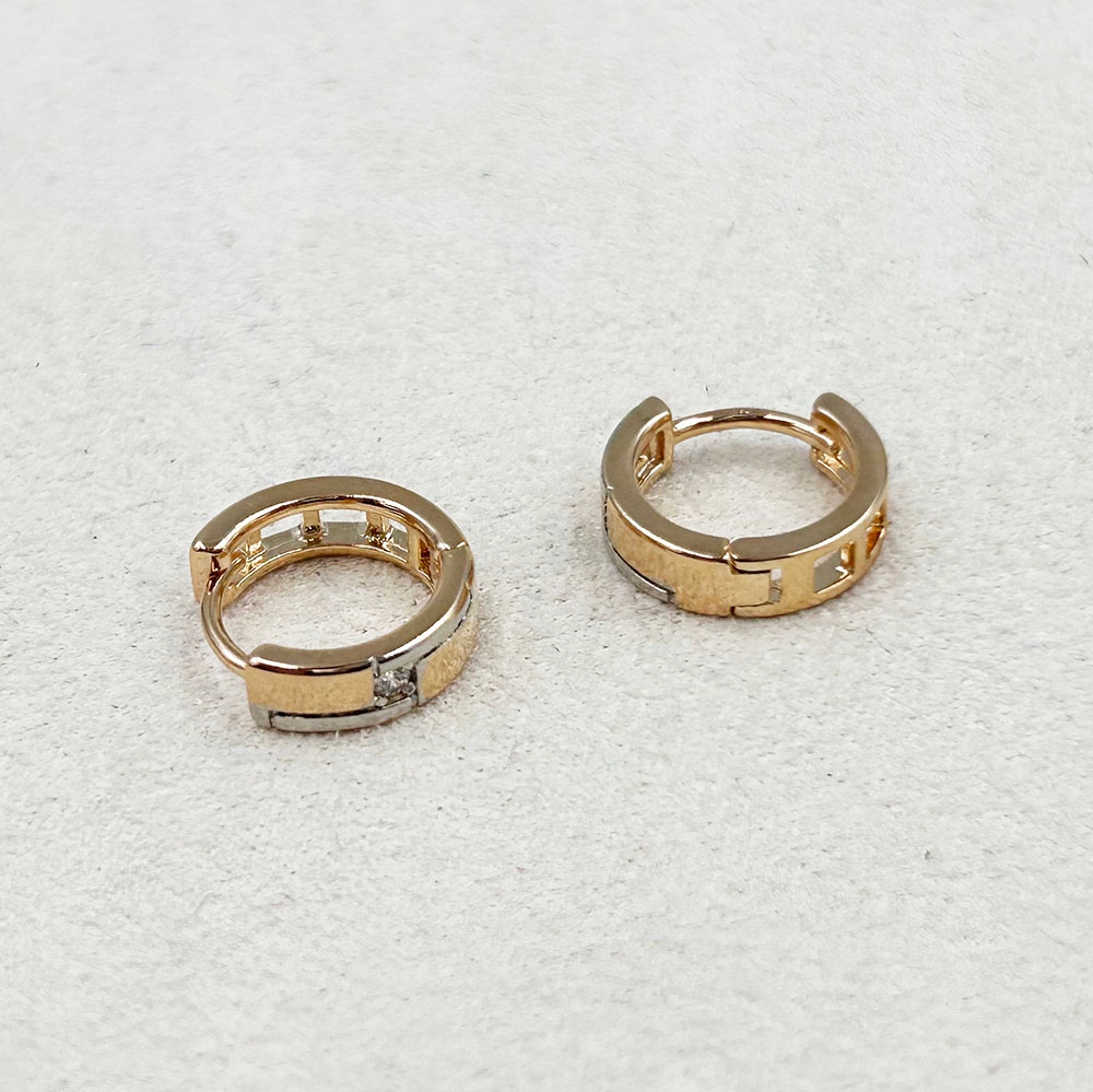 Золоті сережки-кільця, кубічний цирконій, хірургічна сталь DELICATE, позолочене