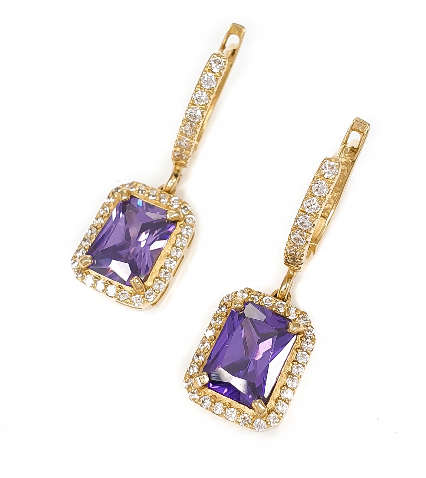 ЗОЛОТЫЕ ПОДВЕСНЫЕ СЕРЬГИ С АМЕТИСТОМ (ЦИРКОНИЙ ОКРАШЕННЫЙ) id K1400